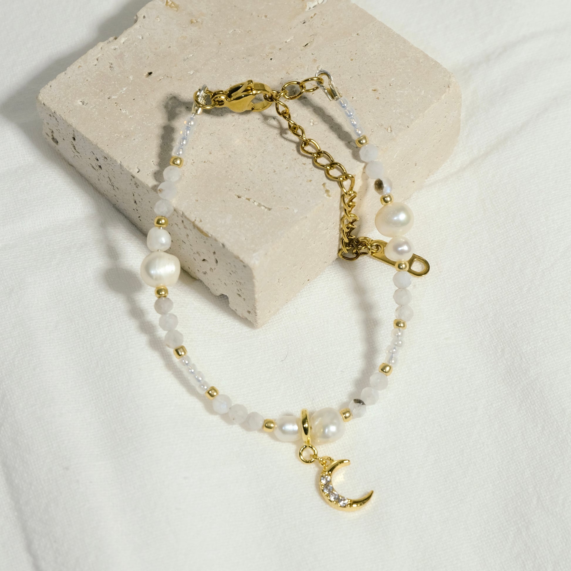Crescent Charm Beaded Bracelet